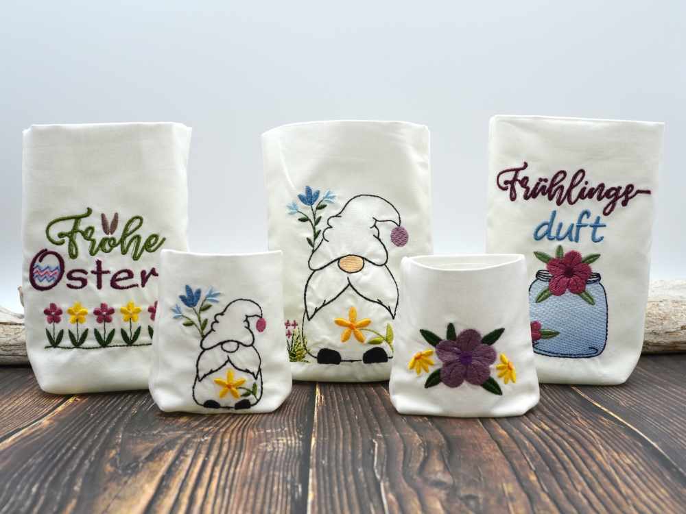 Bunt und fröhlich und im Zeichen der Blumen, so wie der Frühling sein soll: So kann ich das diesjährige Frühlingspäckchen voller Stickdateien bezeichnen.
