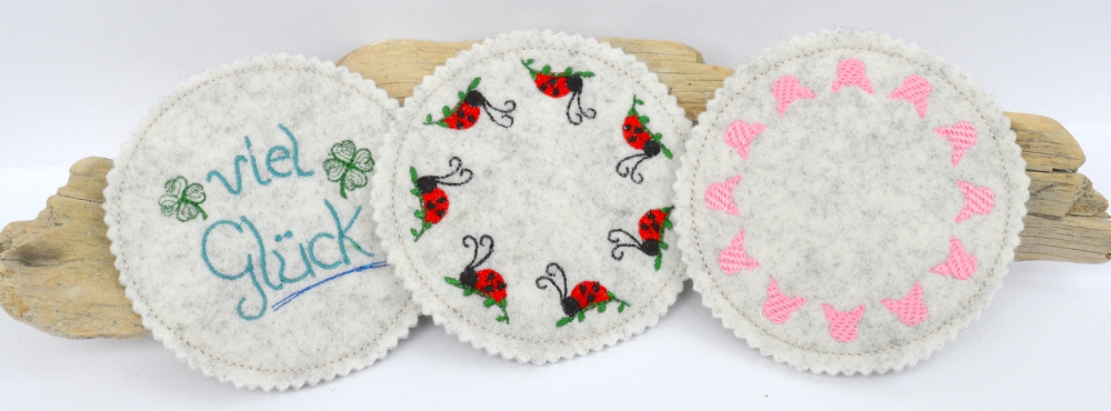 Schnell gestickte Untersetzer mit Glück bringenden Motiven. Eine liebevolle Deko auf dem Silvestertisch, gestickt auf Wollfilz oder Stickfilz.