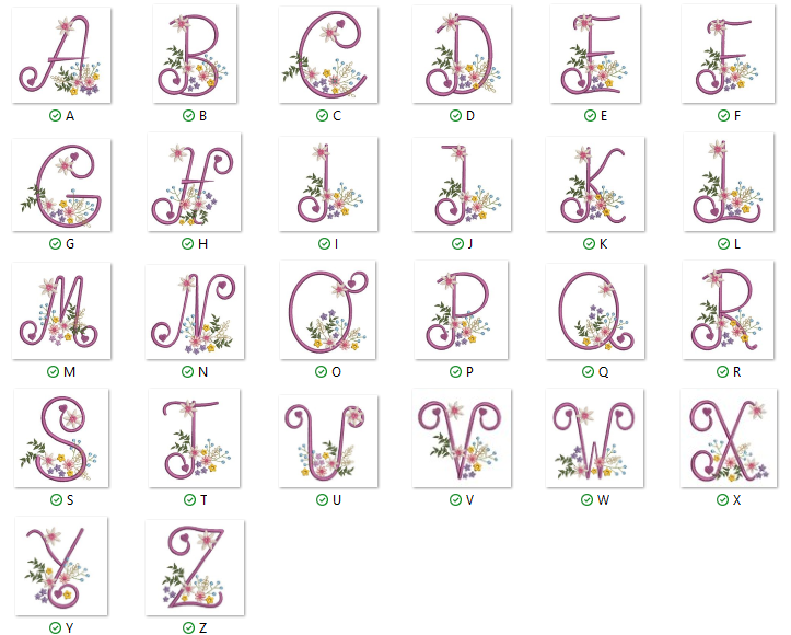 Wunderschöne, geschwungene Buchstaben verziert mit Blumen: diese Großbuchstaben können am Anfang eines Wortes verwendet werden oder auch als einzelner Buchstabe eine hübsche Deko darstellen. Namenszüge lassen sich hier wunderbar miteinander kombinieren.