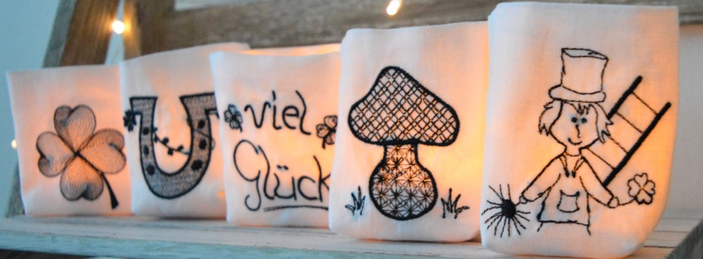 Lichterbeutel Stickdatei Glücksbringer,