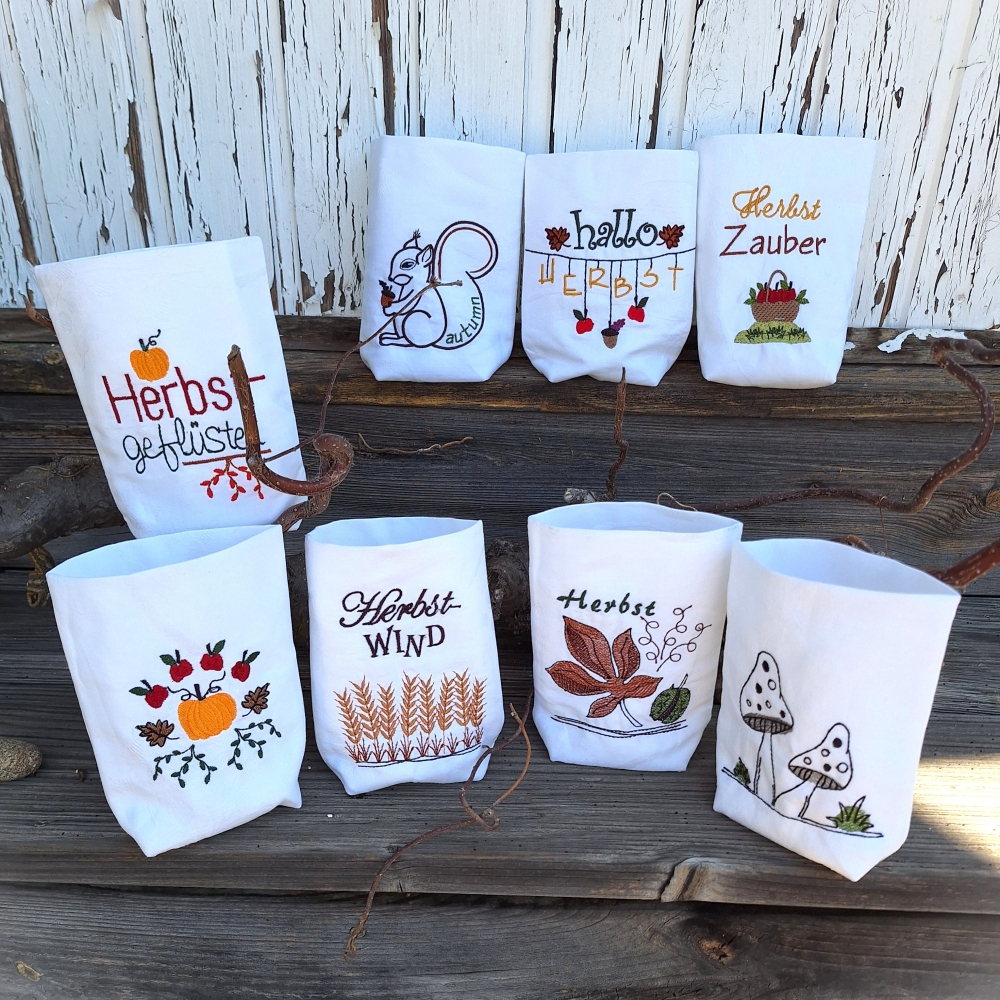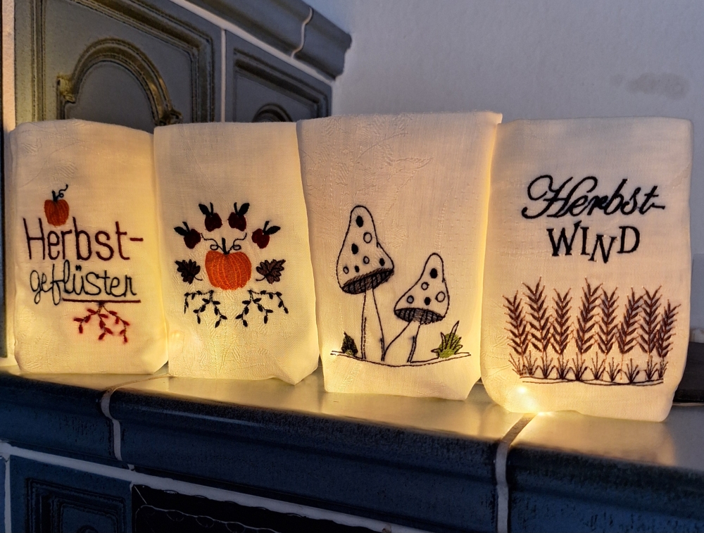 Lichterbeutel Stickdatei mit Herbstmotiven.