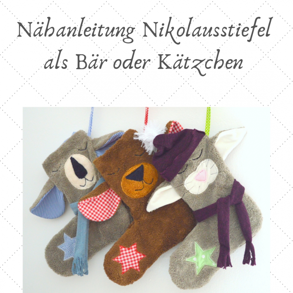 Nähanleitung Nikolausstiefel Bären und Katze inkl. Schnittmuster Anleitung und Stickdatei