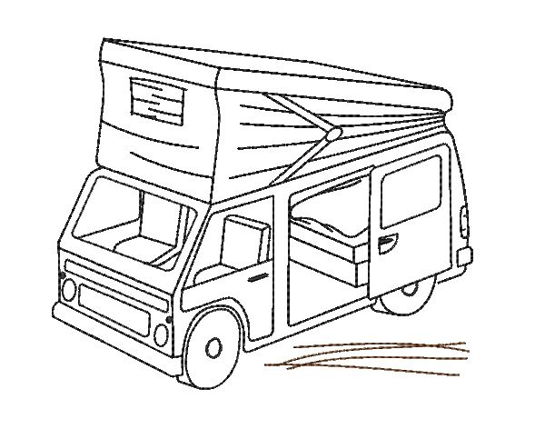 Stickdatei Campingbus Bus Camping Redwork 4 Größen