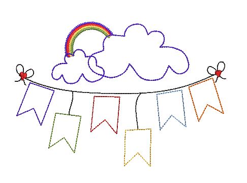 - Wimpelkette/Wolken und kleinen Regenbogen/ Stiche 6500/ 16x23cm