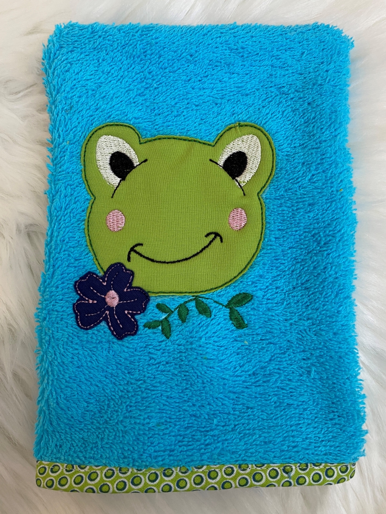 Der kleine Frosch ist heute als Froschdame mit Blümchen unterwegs. Der Frosch wird während des Stickens mit Stoff unterlegt. Enthalten sind mehrere Größen.