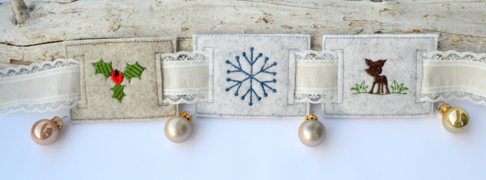 ITH Stickdatei Geschenkanhänger zu Weihnachten, dekorativ an jedem Mitbringsl zu Weihnachten oder in der Winterzeit! Man kann sie an einem Geschenkband auffädeln und an Geschenken, Weinflaschen, Pralinen anbinden. Oder auch als Serviettenringe verwenden.