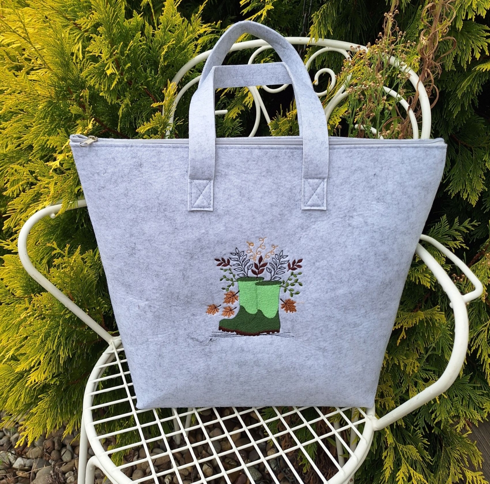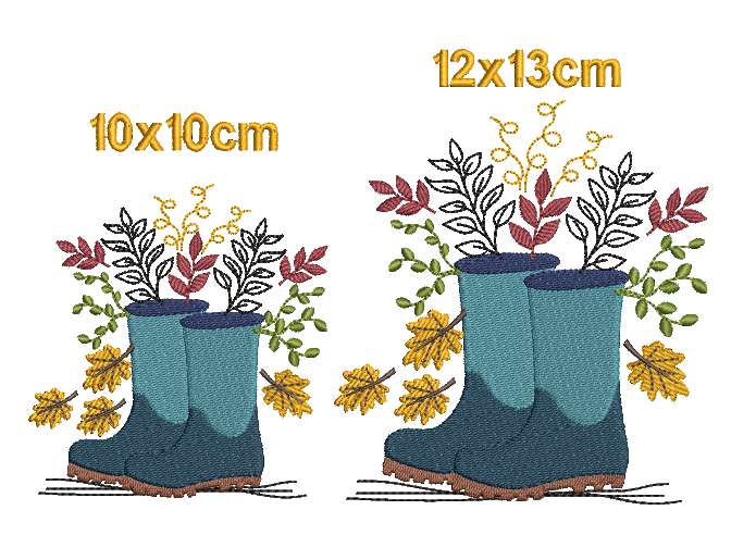 - Stickdatei Gummistiefel mit Laub