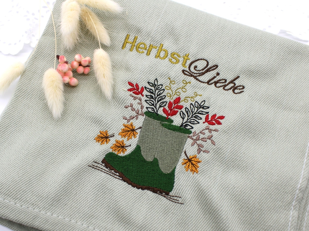 Stickdatei Gummistiefel Herbst Laub Blätter