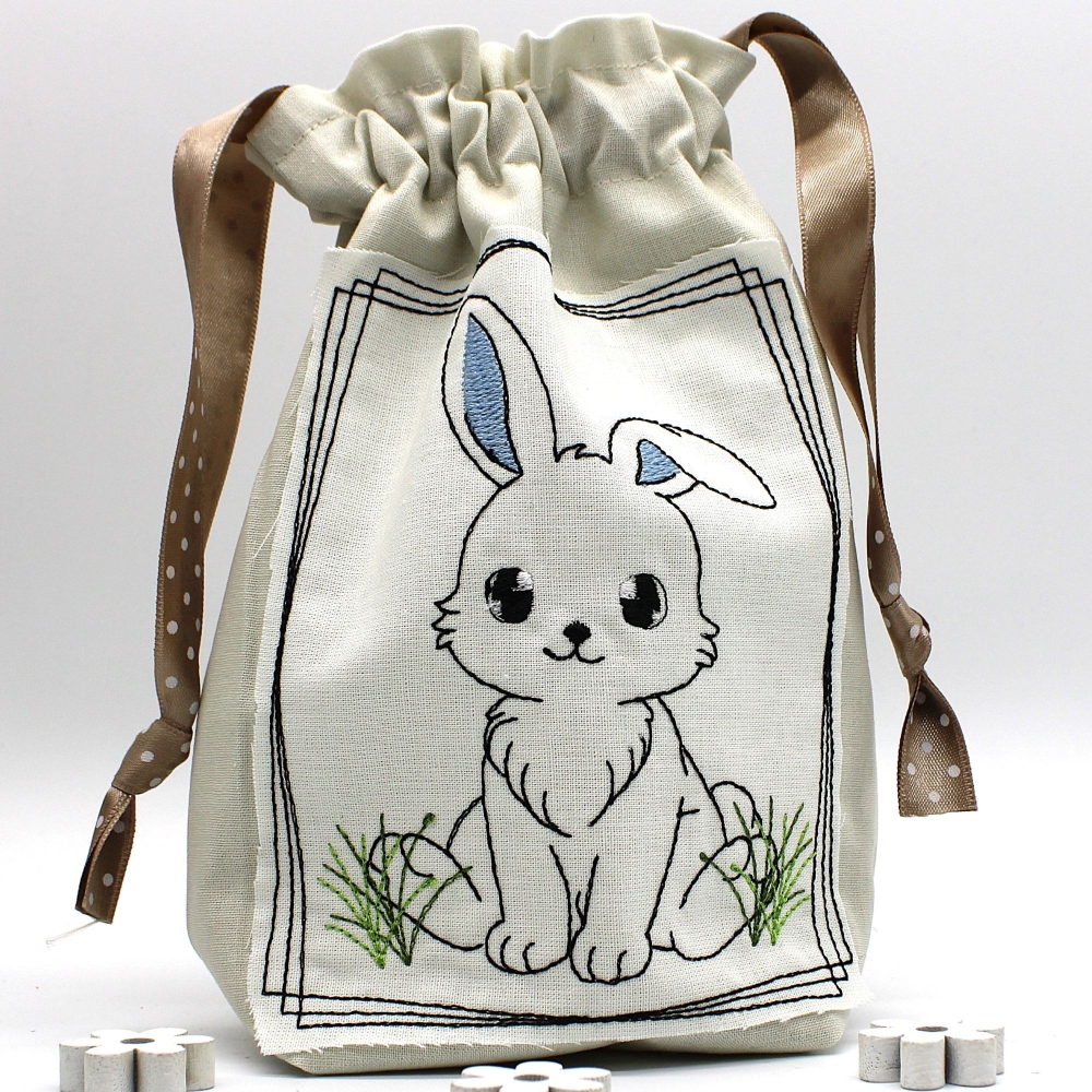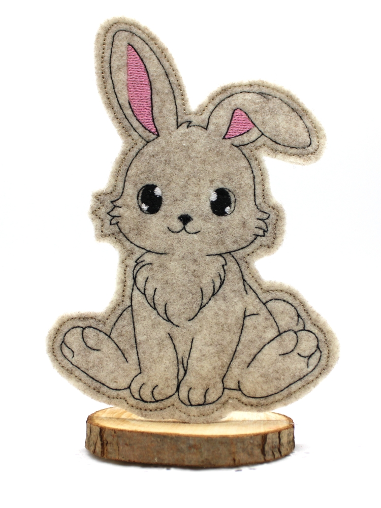 Der kleine Hase ist im SET enthalten mit zweierlei Größen, im doodle Rahmen, als  ITH Stabstickdatei, einer Sockelstickdatei und als Tassenteppich.