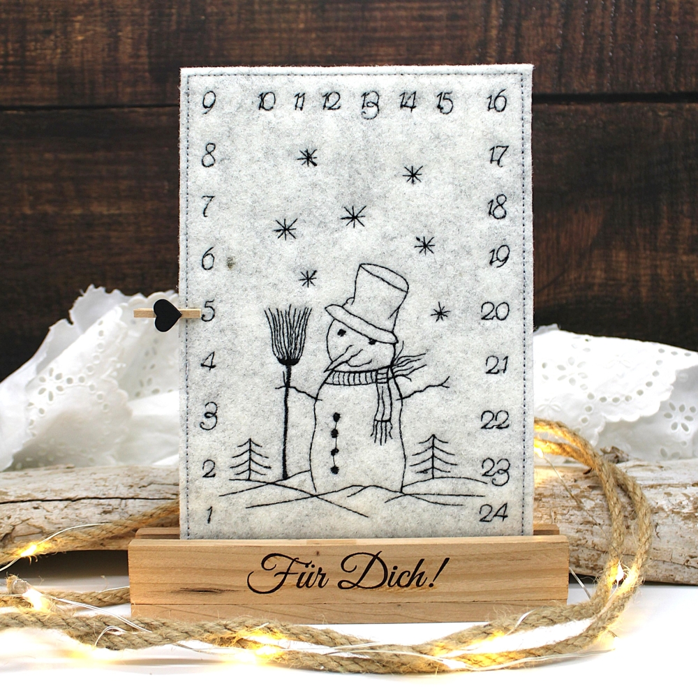 Adventskalender Stickdatei für einen Tischadventskalender oder einen Adventskalender zum Aufhängen.