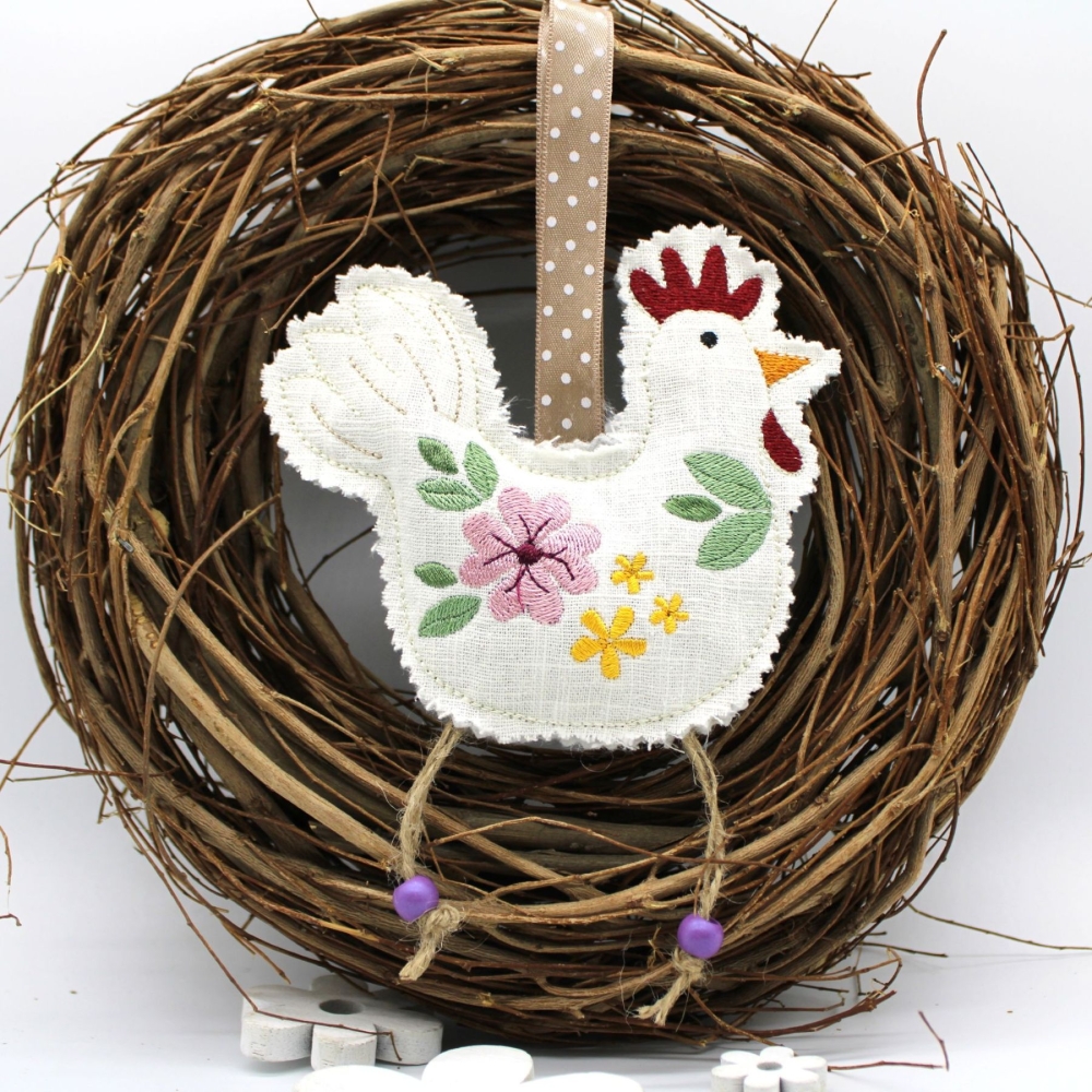 Stickdatei ITH Huhn als Anhänger.