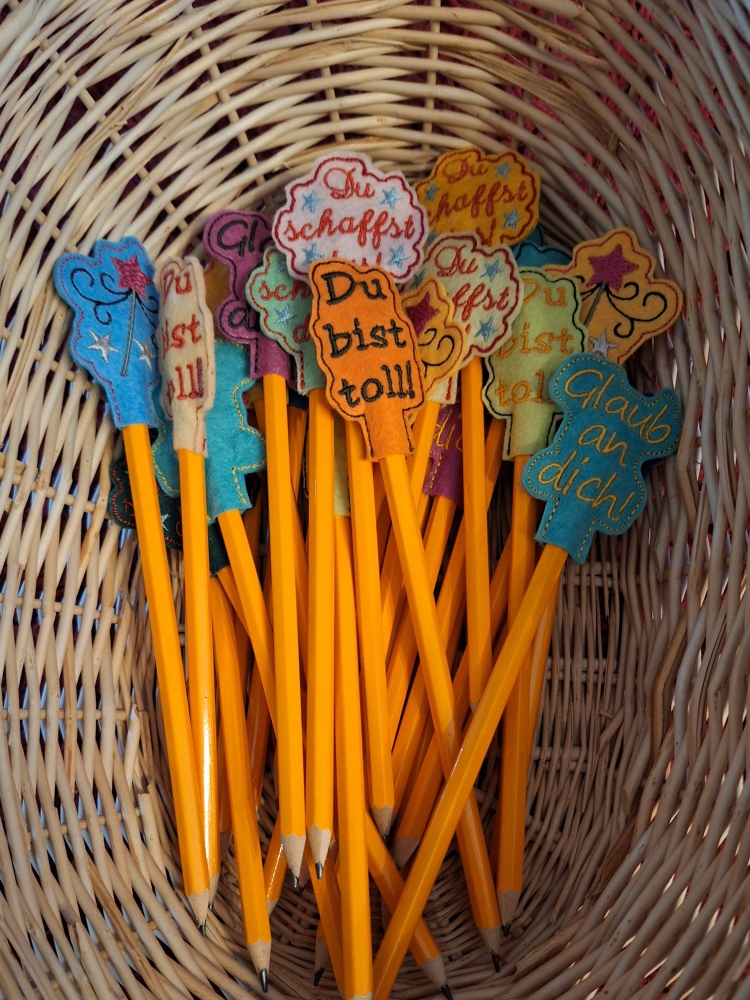 Verschenke Bleistifte mit motivierenden Sprüchen zum Schulanfang und zu jeden Gelegenheiten, in der man etwas Motivation gebrauchen kann: Prüfung, Studium, Schule.
