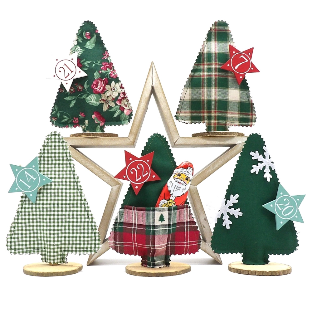Kleine Tannenbäumchen, die komplett im Rahmen gefertigt werden. Du kannst sie auf ein Holzstäbchen geben und anschließend etwas Geld, Süßigkeiten oder handgeschriebene Wünsche einstecken.