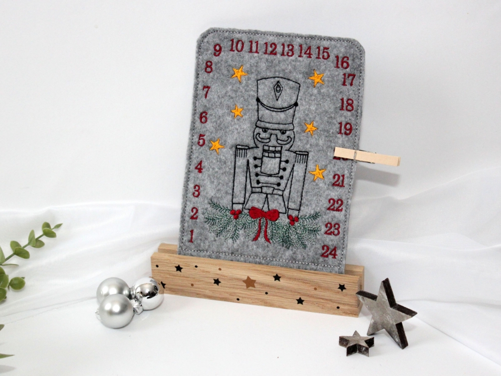 Adventskalender Stickdatei für einen Tischadventskalender oder einen Adventskalender zum Aufhängen mit Nusskancker.