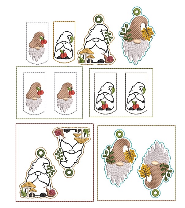 Stickdatei ITH Wichtel Herbst Anhänger verschiedene Varianten