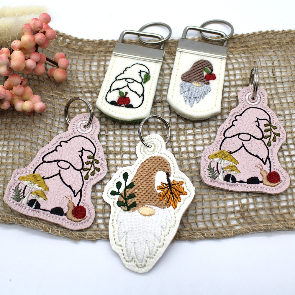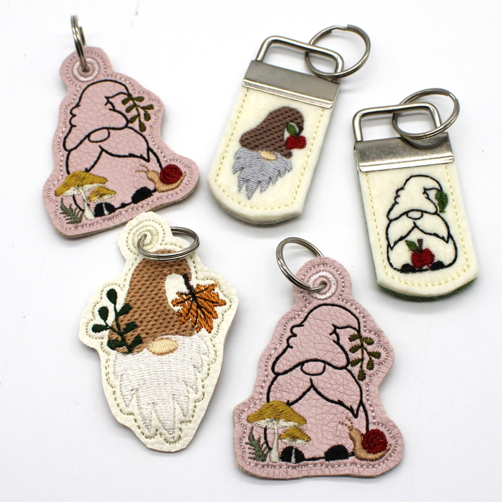 Stickdatei für kleine Herbstwichtel als Schlüsselanhänger.
