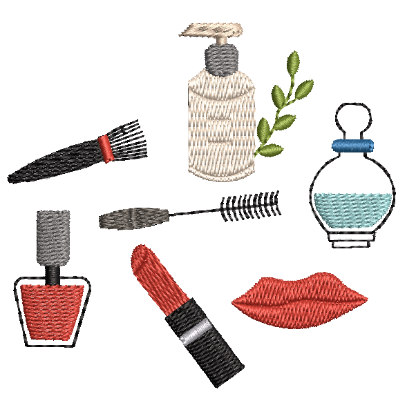 Kleine Stickmuster für kleine Nähprojekte rund um das Thema Kosmetik und Körperpflege.