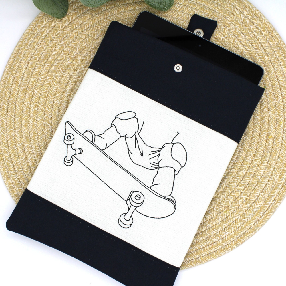 Diese detaillierte Stickdatei zeigt einen Skateboardfahrer im klaren Konturstich. Ideal für Textilien, Taschen und Accessoires, die einen sportlichen Look brauchen. Die Linienführung ist sauber und gut geeignet für viele Nähprojekte. SOmit auch mal eine schöne und schnell gestickte Datei für die Jungs!