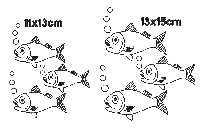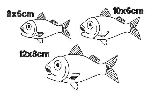 Der Fisch wird im Konturstich gestickt und ist einzeln aber auch im Schwarm mit drei Fischen enthalten. Dazu gibt es ihn in mehreren Größen.