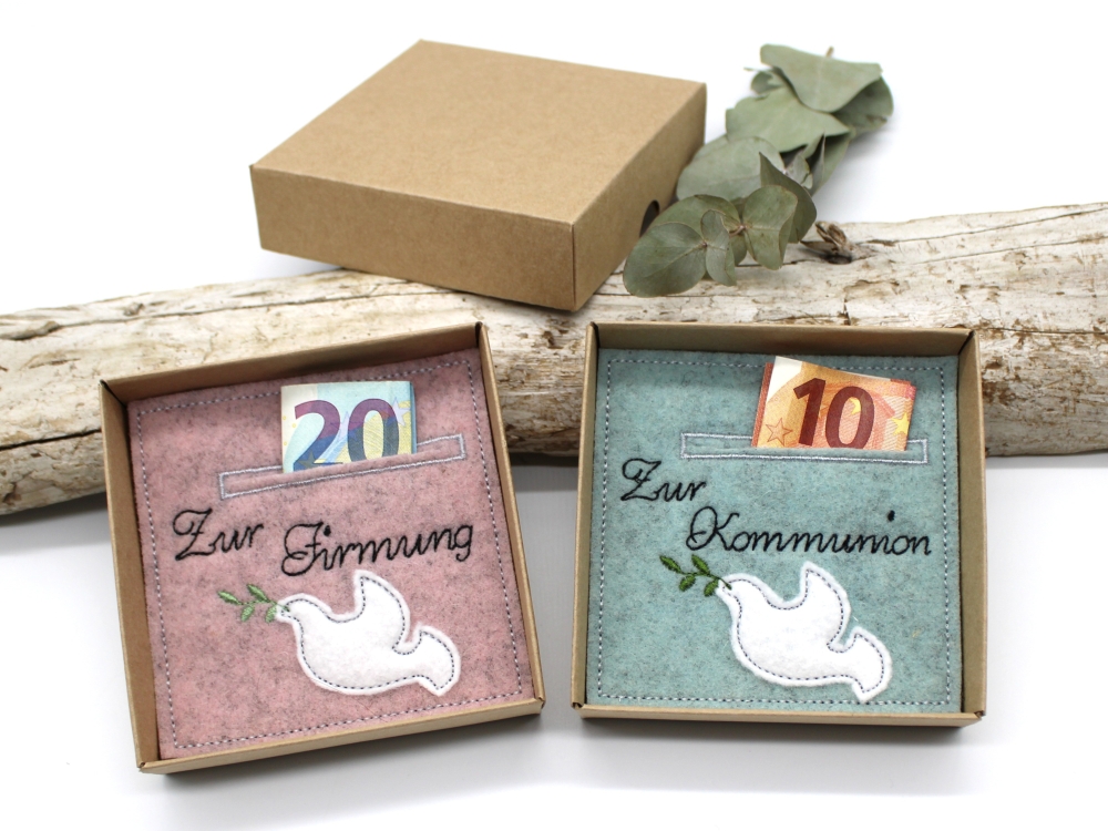 Verschenke Geld und Glückwünsche zur Taufe, Kommunion, Firmung oder Konfirmation, hübsch verpackt in diesem Wunscherfüller. Dieser wird durch einen schlichten Fisch ergänzt.